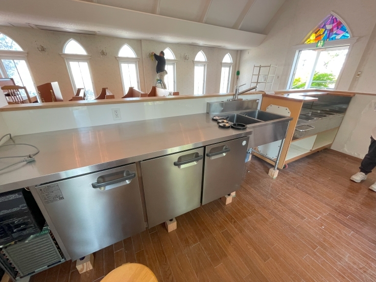 シンクや冷蔵庫も搬入され、完成間近となりました!!