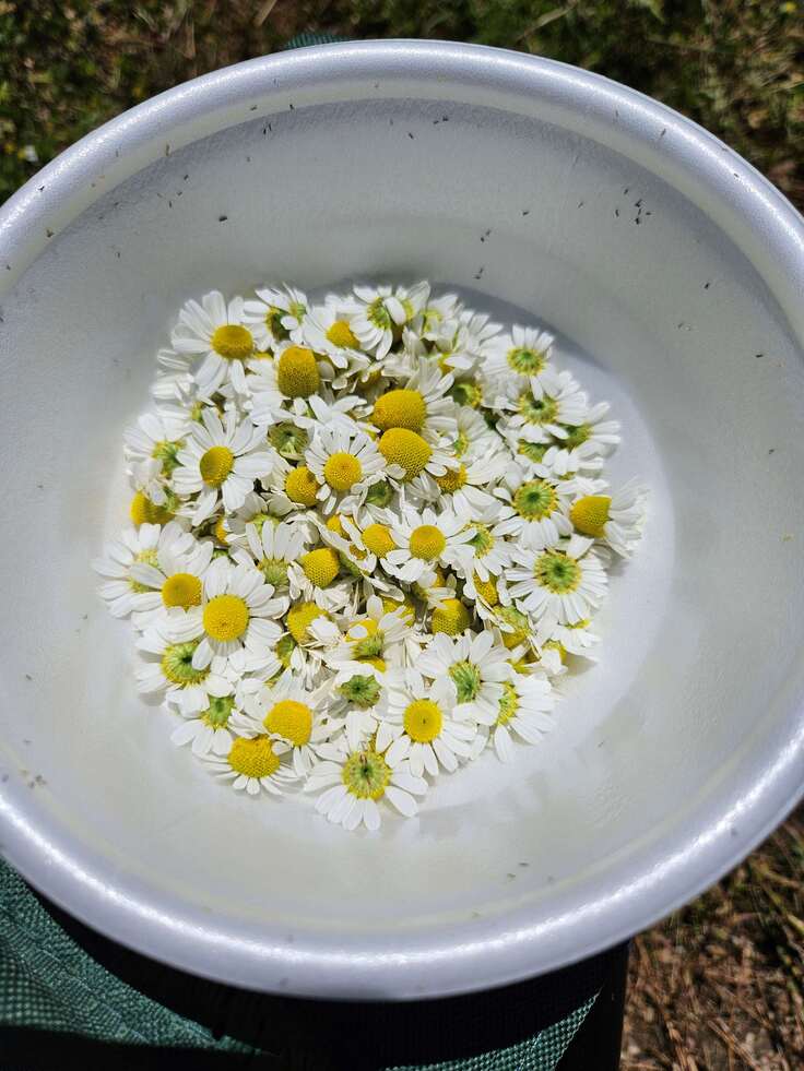 この日は、良いお天気に恵まれましたが、風が強く、せっかく収穫したカモミールを飛ばされる参加者もおられました。