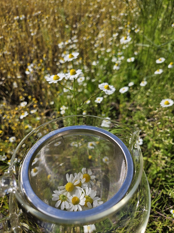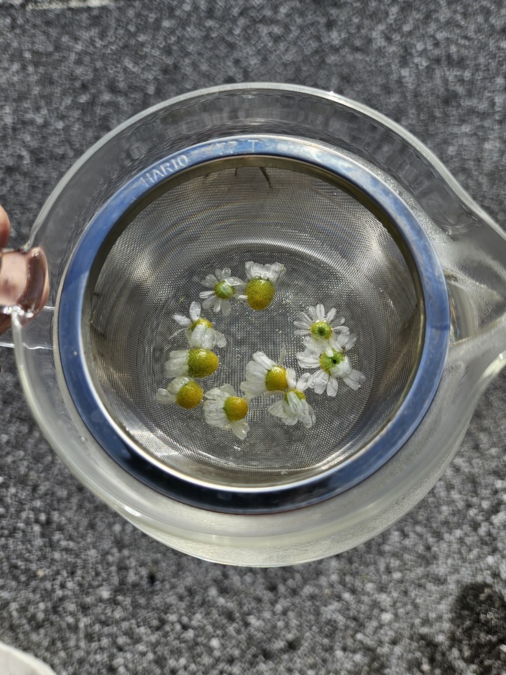 お湯を注いで約5分ほど蒸らしたら、カモミール特有の甘い香りがしてきました!