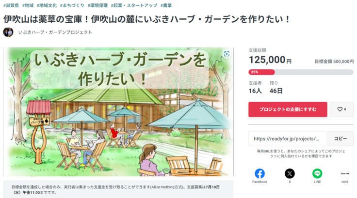 いぶきハーブ・ガーデンのクラウドファンディングページをご覧いただきありがとうございます!