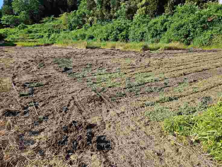 今日作業した田んぼは、この田んぼの一部で父親がマコモダケを栽培していますが3分の1程度しか使えていませんので、栽培面積を増やすための耕作放棄地解消です。