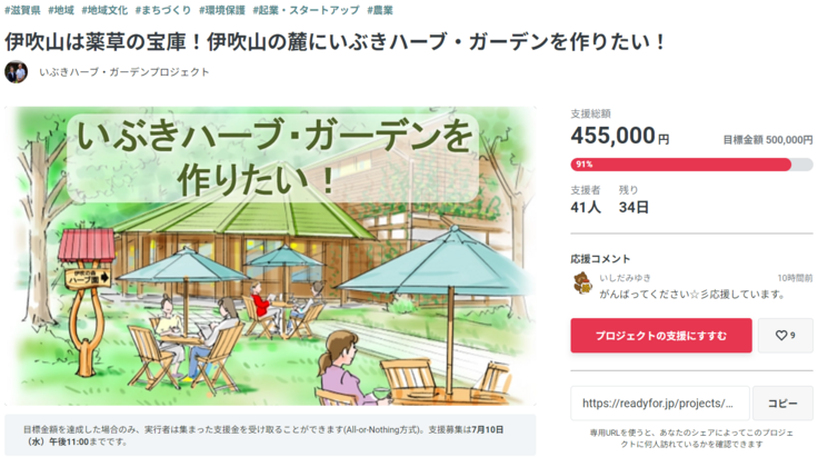 いぶきハーブ・ガーデンのクラウドファンディングページをご覧いただきありがとうございます!