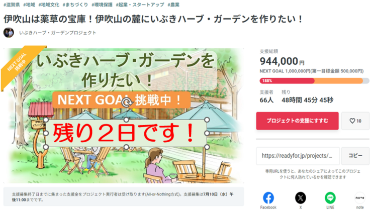 いぶきハーブ・ガーデンのクラウドファンディングページをご覧いただきありがとうございます!