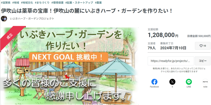 いぶきハーブ・ガーデンのクラウドファンディングページをご覧いただきありがとうございます。