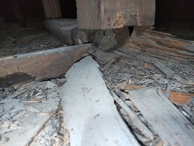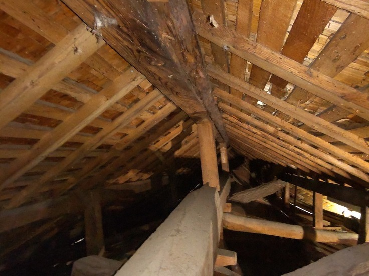 腐食した棟木、棟木から外れた垂木①
