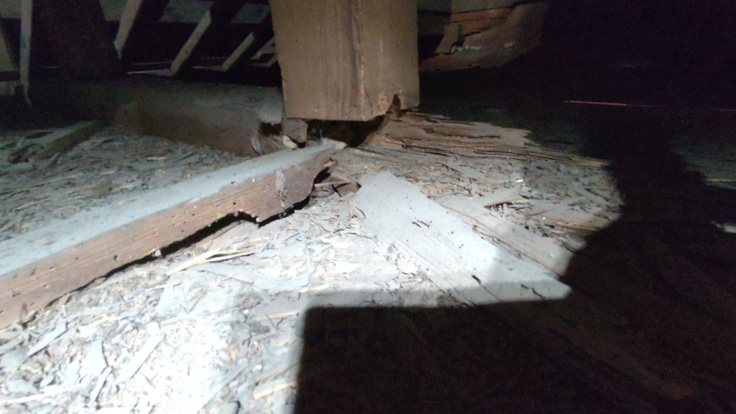腐食した棟木、棟木から外れた垂木②