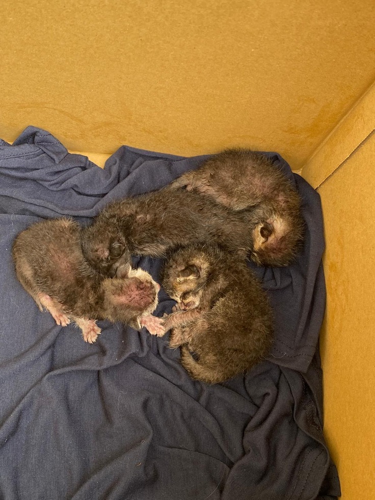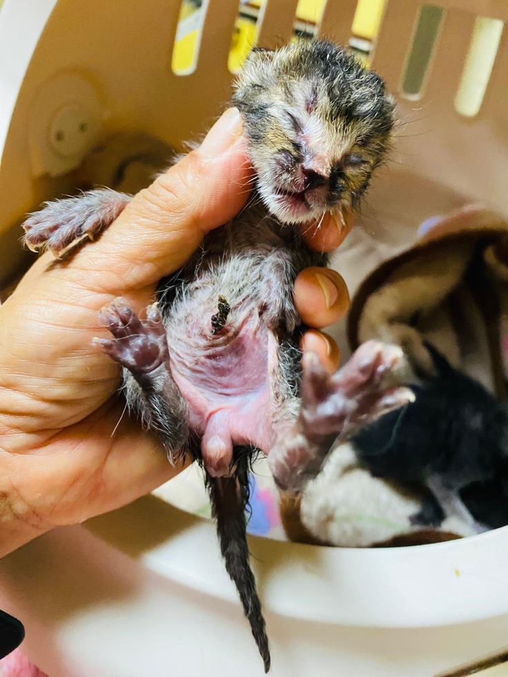 この日、ひどい雨が降っていて、ママ・シャディはヘルニアの痛みを抱えながら、遠くに運転するのも大変なのに、学生たちと会うために出かけました。学生たちは段ボールの箱を手に入れて、排泄所の床に投げ捨てられていた子猫たちを中に入れました。かわいそうな無防備な子猫たち、どうしてそんなことができるのでしょうか?ママ・シャディは彼らの世話をしています。