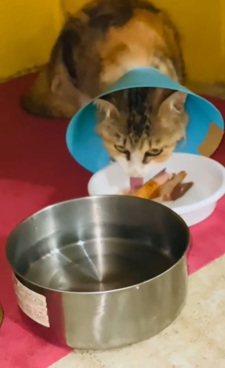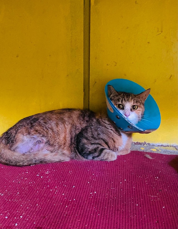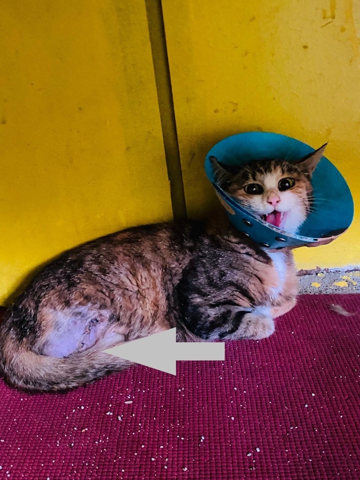 彼女は知られたボランティアに捕まえられ、獣医に連れて行かれ、そこで今日、足を切断されましたが、今は元気です!ケースバイケースですが、この場合、彼女は誰かが餌を与える人がいなかったので、元の場所に戻すことはできませんでした。そのため、ママ・シャディが彼女を救いました。今日、彼女は私たちと一緒にいて、元気で回復しています。