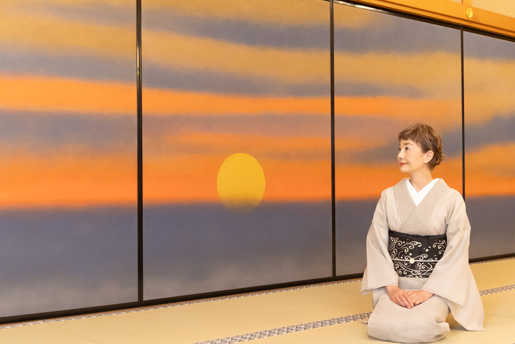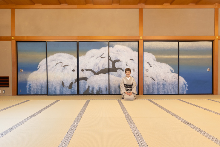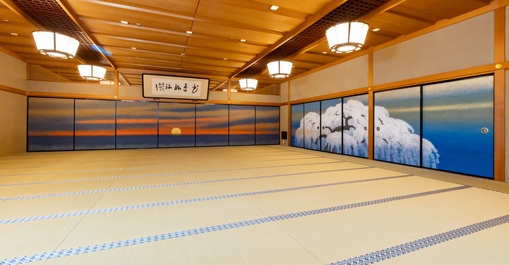 このたび、開館15周年を記念し、大本山成田山新勝寺 特別協力のもと、大山が約2年の歳月をかけ1980年に完成させた、成田山新勝寺光輪閣「日輪の間」 「月輪の間」襖絵《日月春秋》全28面を一堂に展示いたします。