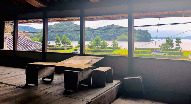 2階からは坂越湾が目の前に広がり、生島が望めます。定期的に雅楽など伝統芸能を