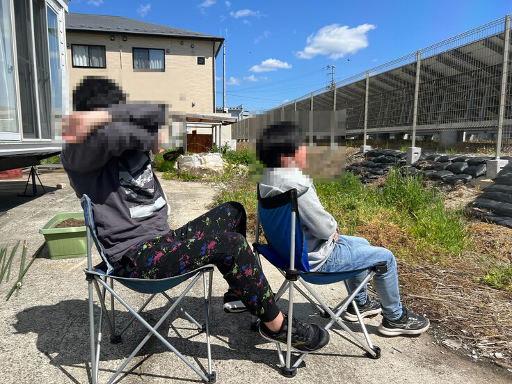 天気の良い日は、外でキャンピングチェアーに座り、青空の下で交流しております。