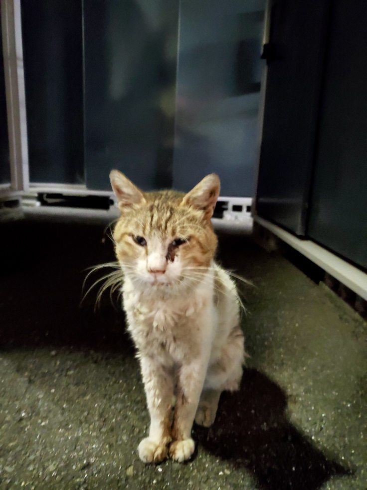 男の子です。おっとりしていて 近くまで寄れるんですが 鋭い猫パンチ出ます(T . T)引っ掻け傷は 大丈夫でしたが 手の甲に内失血(泣)梅雨入りまでに 保護したいと思って