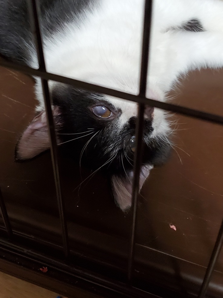 以前 保護した子猫 あおちゃん。目薬を頑張ってしてきましたが 左目は 改善されずでした(>_<)