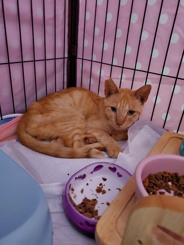 9日(土曜)の夕方 家の前で ガリガリの茶トラ保護。お腹が空いてるようで 抱っこしてそのまま キャリーって思ったんですが 逃げるんで 捕獲器で保護し フロントラインしゲージに。