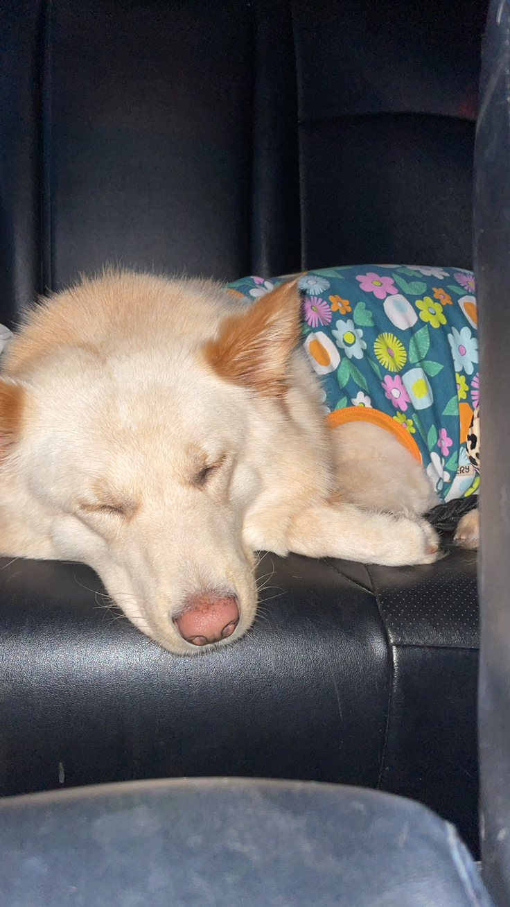 人混みに疲れたのか帰りの車で爆睡していたトロくんです😅