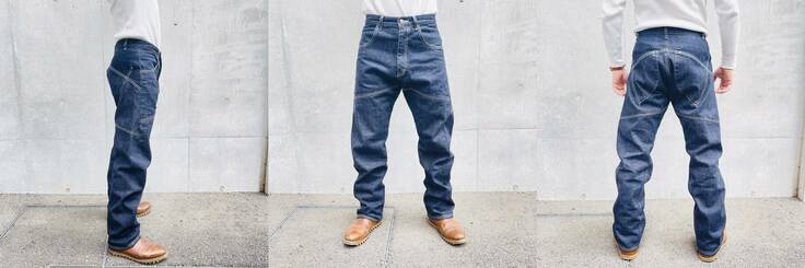 国内有数の品質と生産を誇る岡山デニムを贅沢に使い立体裁断も用いて