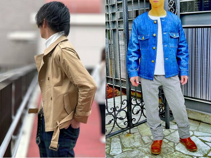 まるでトレンチコートを途中で切ったようなデザインのコートジャケット