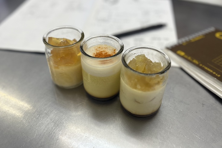 カルダモンとグローブのミルクプリンを2層にし