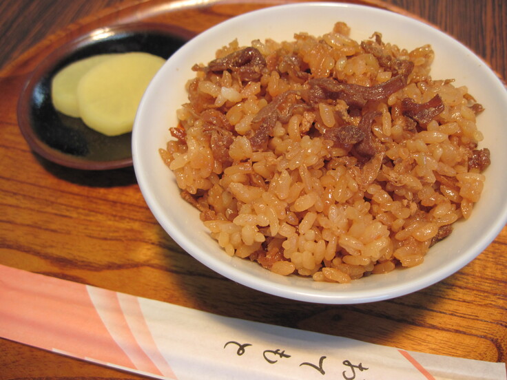 郷土料理の「とりめし」は、甘辛い味付けの混ぜご飯で、B-1グランプリにも出場しています。おいしいですよ!