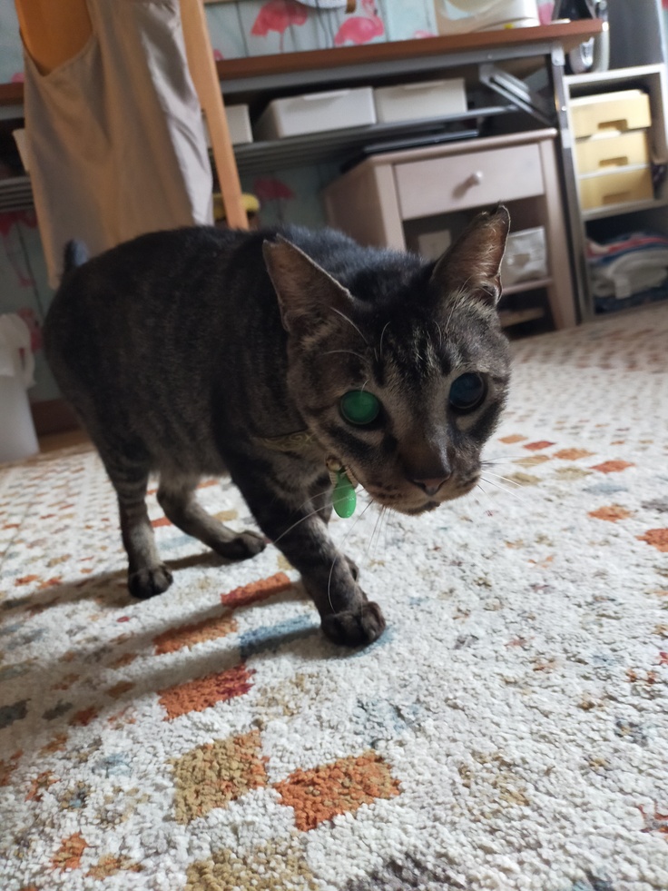 写真のように、お部屋を自由にウロウロとして、食いしん坊なのでご飯を探しているようです😁久しぶりなのに、ゴロゴロスリスリと来てくれる姿がとてもかわいく、愛おしかったです😻相変わらず、口が閉まらないので舌もペロっと出ている顔もかわいいです😁