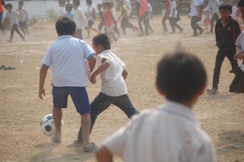 2017年3月にラオスでスポーツイベントを開催した際、ほとんどの子どもが運動着・運動靴を持っていないため、制服や裸足のまま走り回っていました。校庭はでこぼこで、大きな穴や石、ゴミもあり、裸足でスポーツをするには危ないと感じる場面が多くありました。