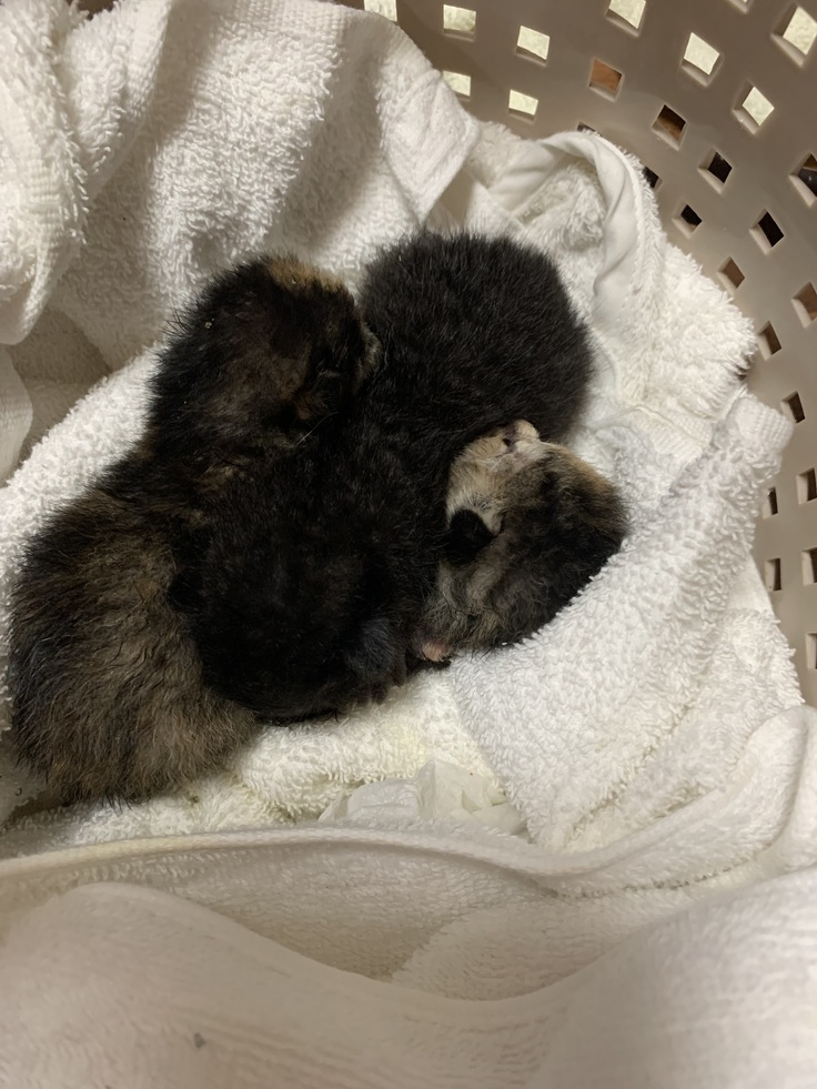 へその緒がついたままの状態で野良猫が納屋に出産してて