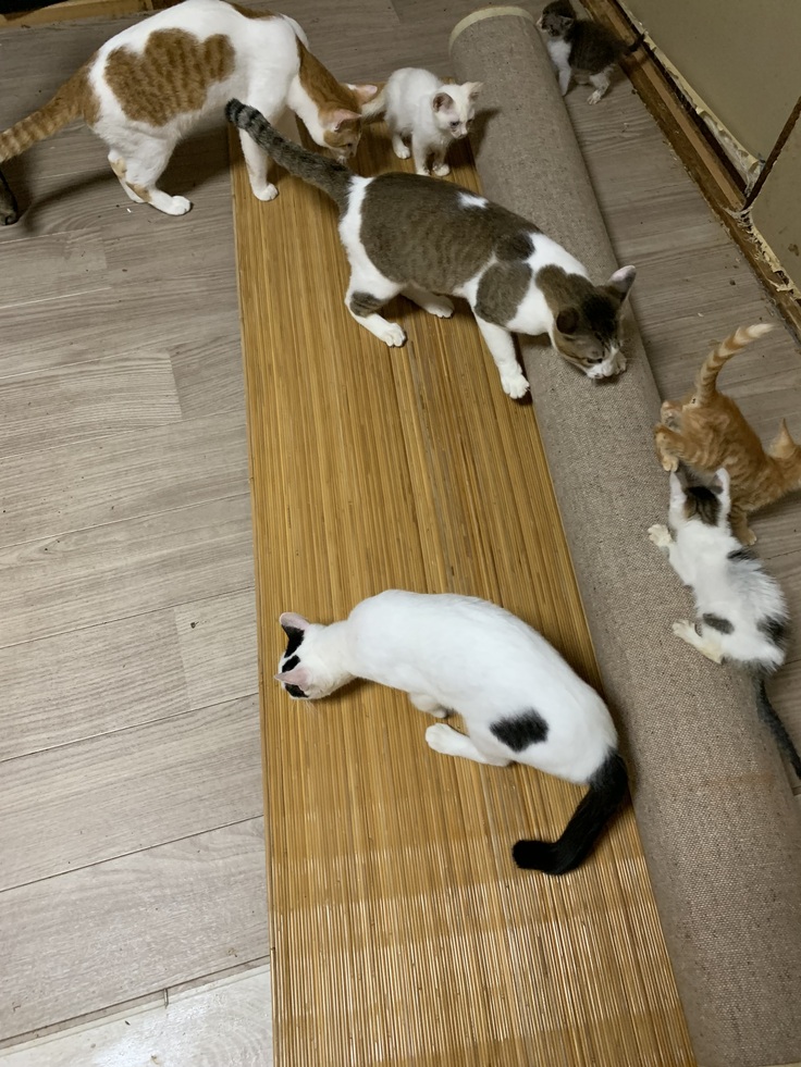 保護猫様達✨新しい竹?の敷物に興味しんしん