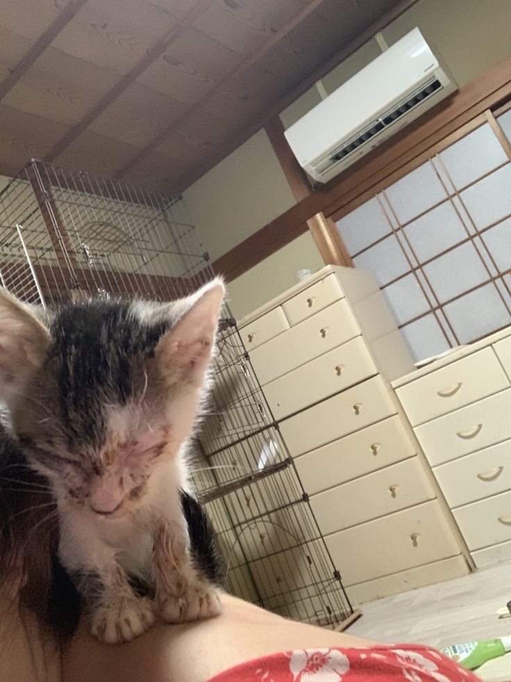 野良猫の子供だったから依頼者さん家に行った時箱に入れられてた時すごく怖がってたよね。まだまだ猫風邪が完全には治ってないけどニャーニャー鳴いて私の後ばかりくっついてくるまでに✨今日は肩によじのぼってきてくっついてました🫶
