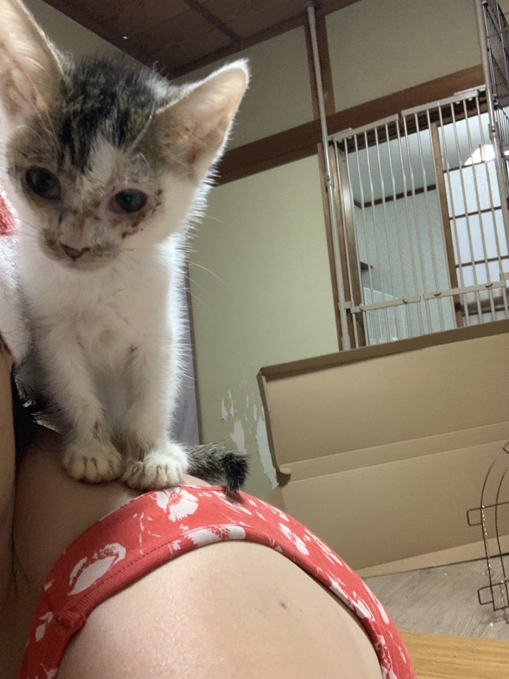 保護した時に比べたら目がハッキリしてきました😊まだ完全ではないけど美人さんになってきてます。野良の子猫からここまで甘えん坊になった凛ちゃん✨