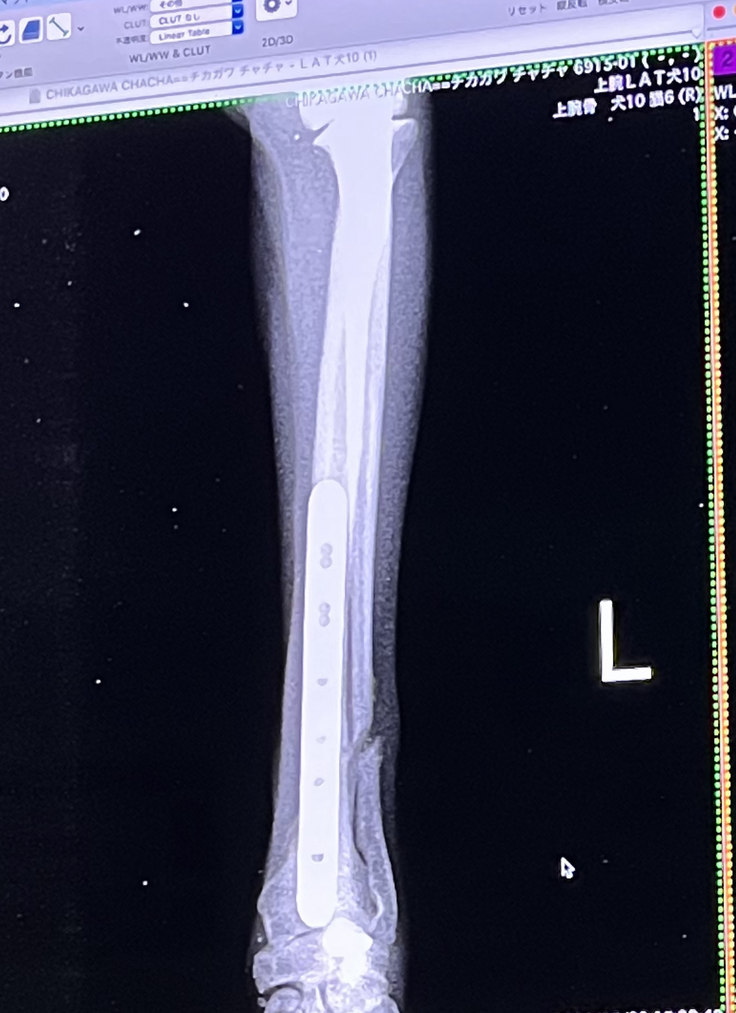 骨折の経過です。まだ細い骨がくっついていないです。みて
