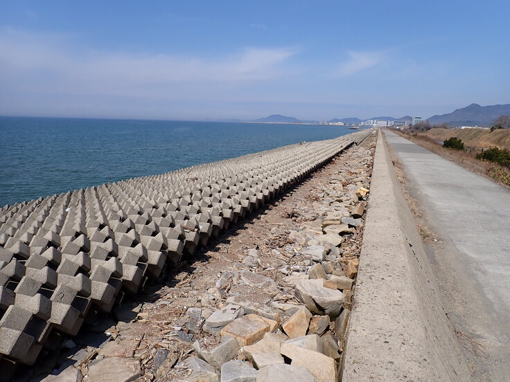 この写真の場所は、香川県観音寺市にある三豊干拓海岸です。全長2キロにも渡るこの海岸は、香川県の中で第3次香川県海岸漂着物対策推進計画の最重要区域に指定されています。つまりわかりやすく言うと、海ごみが溜まりに溜まっている場所です。