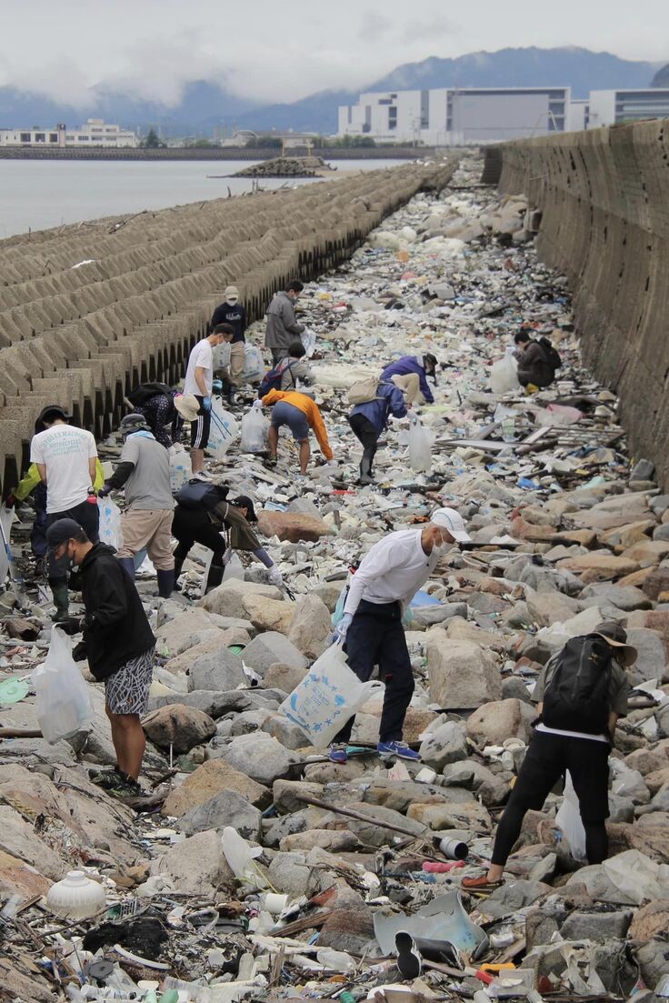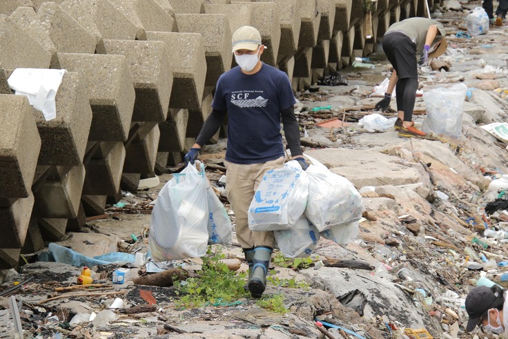 一番最初に海ごみホットスポットの回収に着手したのは、2021年の6月でした。雨上がりの蒸し暑い日でしたが、コロナ禍でマスクをしての作業。26人で1時間半ほど格闘しましたが、90m程度でそれもかなりごみを残した状態。500袋のごみ袋が無くなりましたが、敗北感しかありませんでした、、、。その後も何度か同規模のクリーンアップをやりましたが、やはり敗北感。