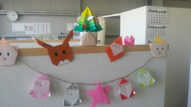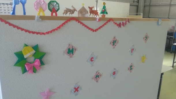 訓練の合間に、利用者様と支援員が折り紙でクリスマス準備☆