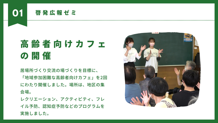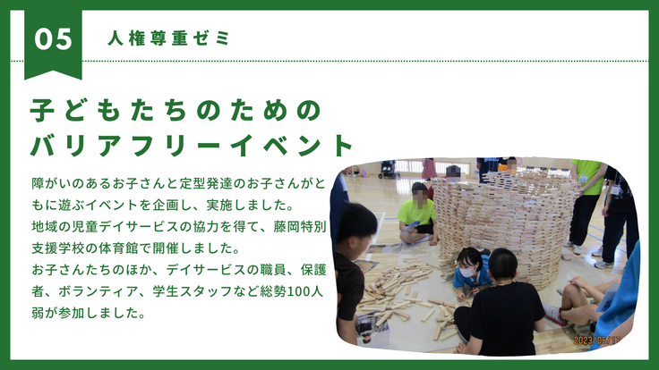 2023年、2024年と2年にわたり学生達は様々な社会活動を実践しました。その成果を地域社会に発信し「共生の社会」実現への一助としたいと考えています。