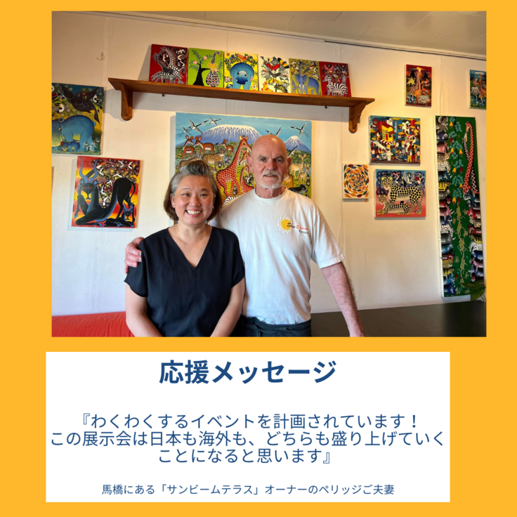 サポートを心から感謝します。SNS及びホームページにて展示会の写真を掲載します。Donation only (no return). Your generous support will help us make the exhibition a success. You’ll be able to follow our progress on SNS.