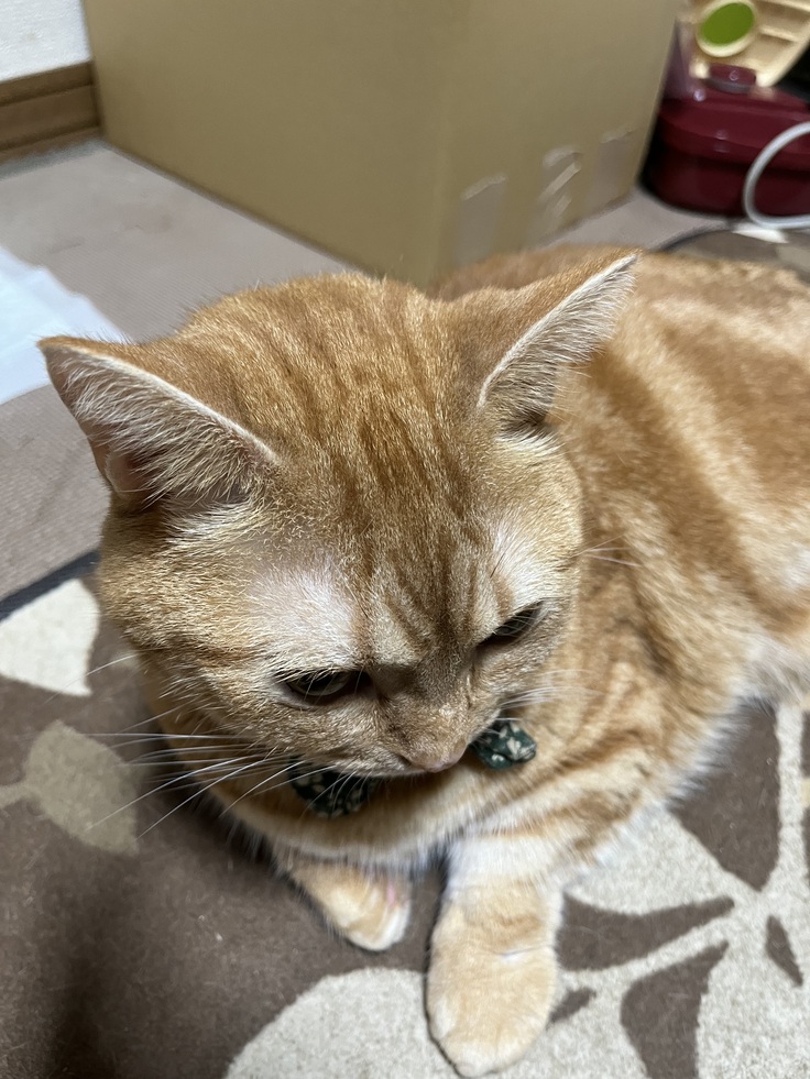 ツムギが諦めかけている様子でオヤツをねだらなくなりました。