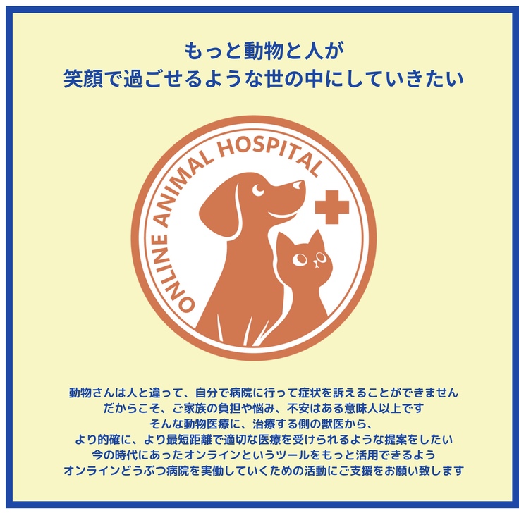 オンラインという手段がもっと認知されて、動物さんと暮らす上での必須のインフラになってほしいと考えています。