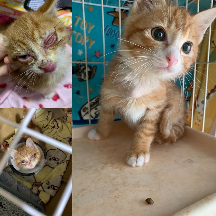 抗生物質と目薬や目の洗浄をやり続けで、まさかの完治。完治して里親さんを探していた時「また目の病気になる可能性ありますよね?」といった質問が多く、里親は見つかりませんでした。