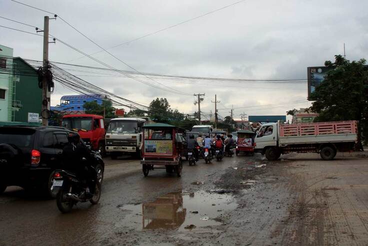 プノンペンの中心部から、空港方面に向かうVeng Srengストリート。