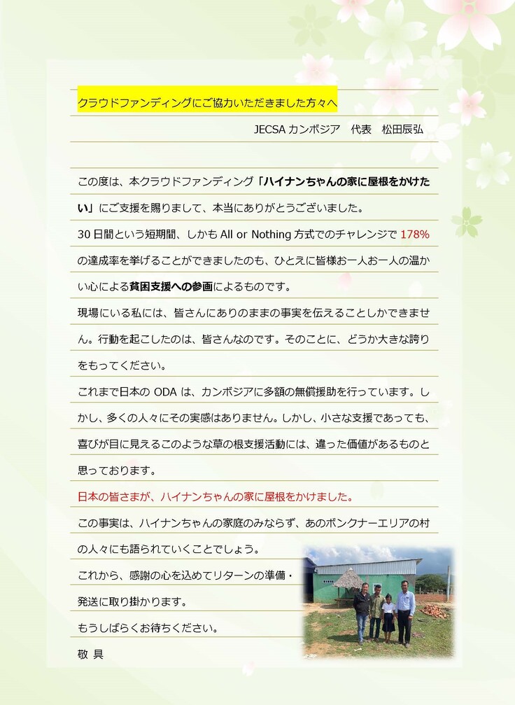 ●ハイナンちゃんからの感謝の手紙をPDF版にてお送りいたします。