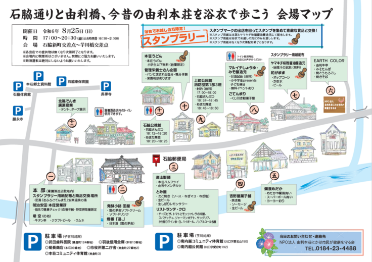 「浴衣で歩こう」のイベントで使用出来るスタンプラリーを1枚お送りします。