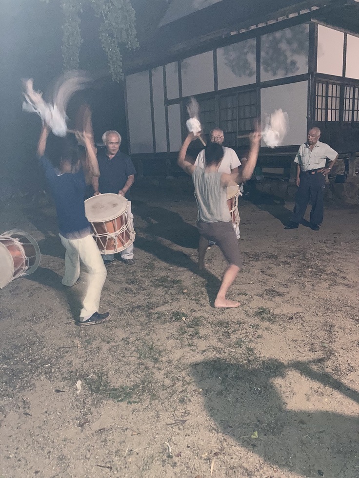 夜、山あいに太鼓の音が響き渡る。長老達から若者に細かい指示が出る。