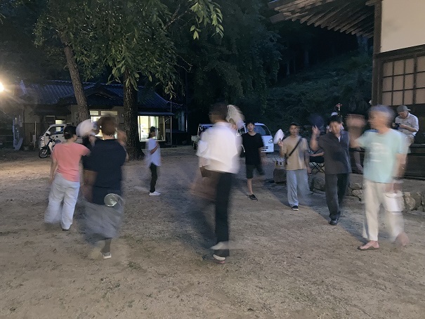 夜、12時を打つと同時に、水、お茶を取り替え、盆棚からススキのゴザを外し、上記の送る品々をゴザの上に置く。夕飯に供えた5回目のお膳の料理を柿の葉に包み、同様の今まで4回分の柿の葉包みの料理を一緒に置く。