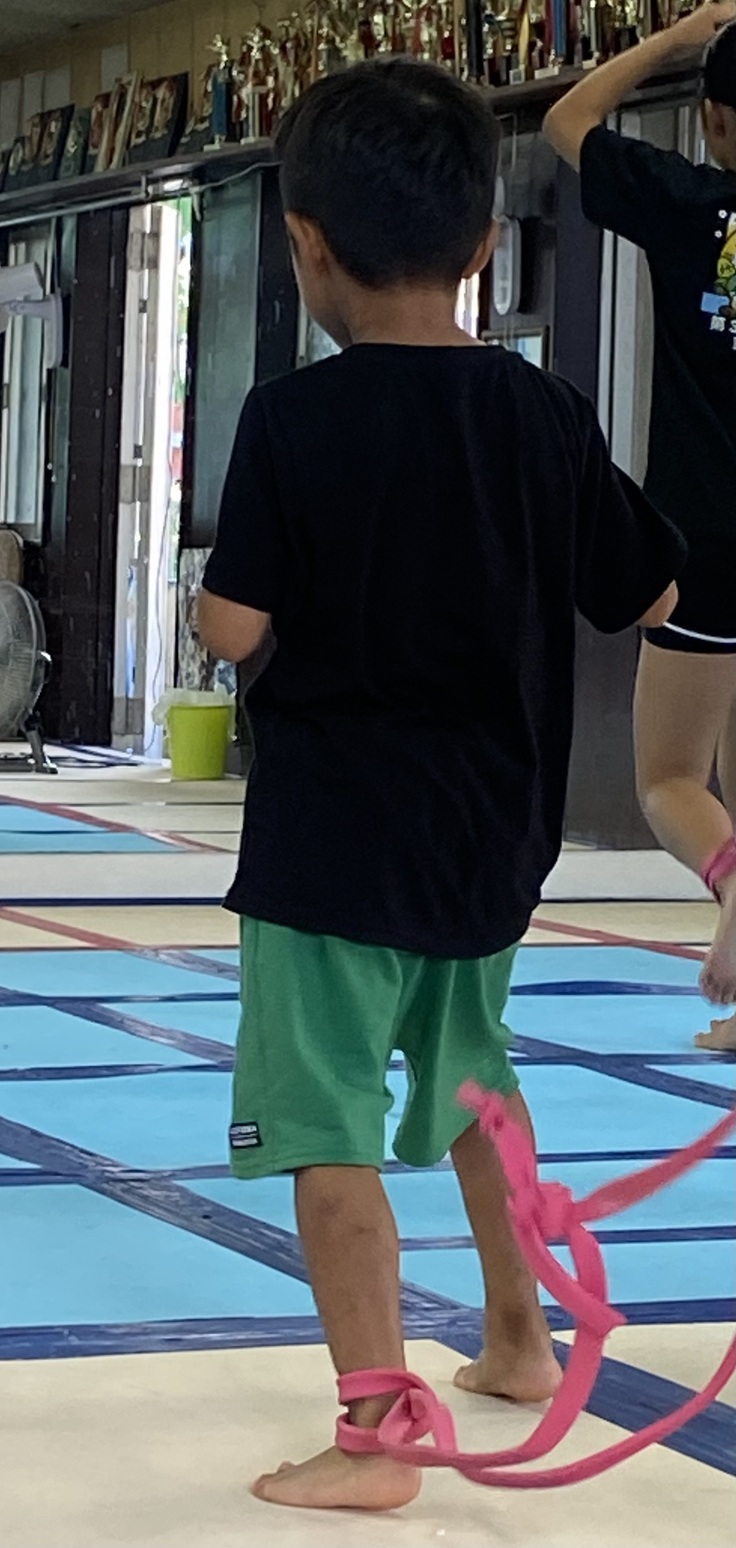 運動→チューブトレーニング→形の通し稽古→筋トレのメニューをした後もまだまだ元気いっぱいの健誠でした😳