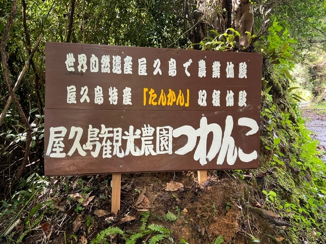 世界自然遺産屋久島観光農園「つわんこ」の看板をリピ-タ-の真紀ちゃんに