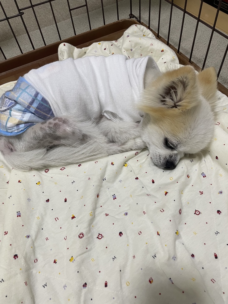 手術の際に毛を刈られましたがチーくんは1度毛を刈ると生えにくい体質のため恐らく生えてこないのではと心配しています、、
