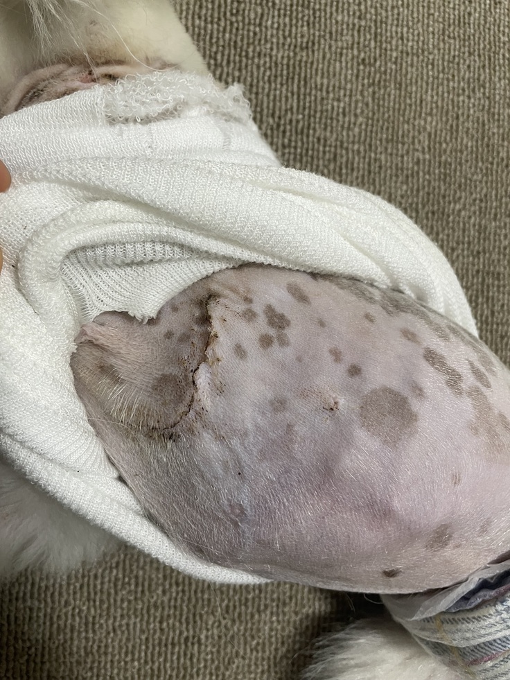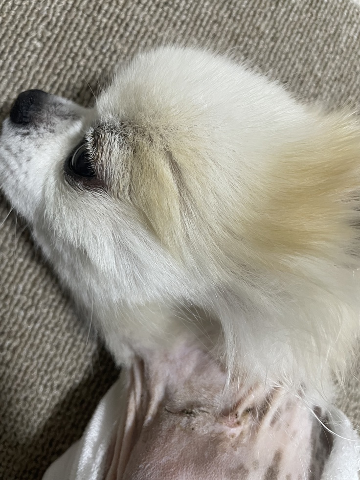 まだ痒そうにしてますが、一日に搔くペースは落ちたので、カサブタが剥がれて少し経てば掻くのも無くなると思います!🥰