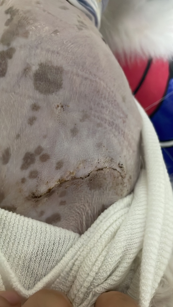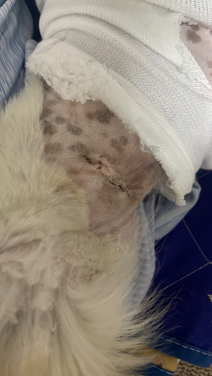 次にお腹ですがこちらも首元と同じく傷跡はかなり目立たなくなっておりあとはカサブタがはげるのを待つだけです。