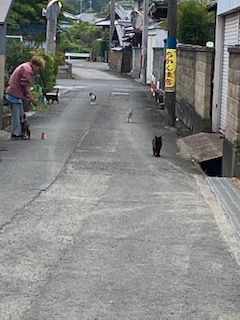 ガレージのお宅付近で餌やりしてる場所は道沿いでおじさんが餌をあげてます。車が通って危ないし、そして汚く悪臭もしていて、