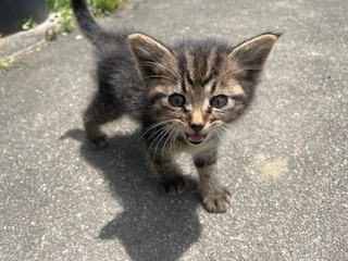 先日近所のお宅の庭に、子猫が現れたと連絡を貰い、向かった先に子猫1匹。